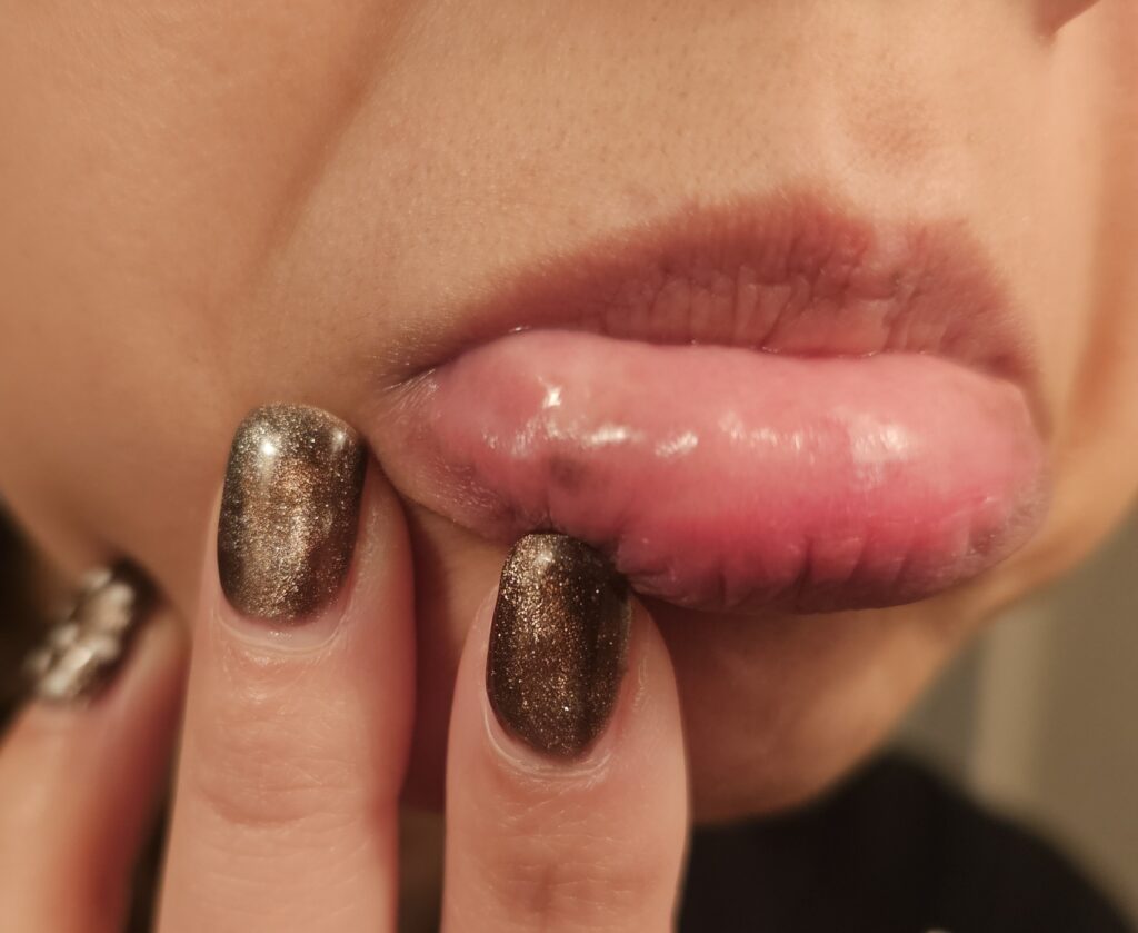 左側に2つと右側に1つ、盛り上りや痛みはなく、2~3ミリほどです。これはシミでA.こんにちは、安原歯科医院の安原豊人です。