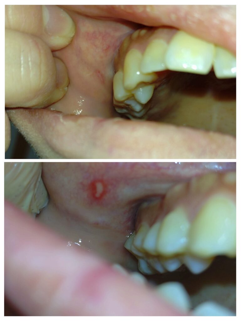 1. 10日前に口内炎ができ痛みはすぐ消えましたがまだ白い線が少し残っていて中々消えず心配です。