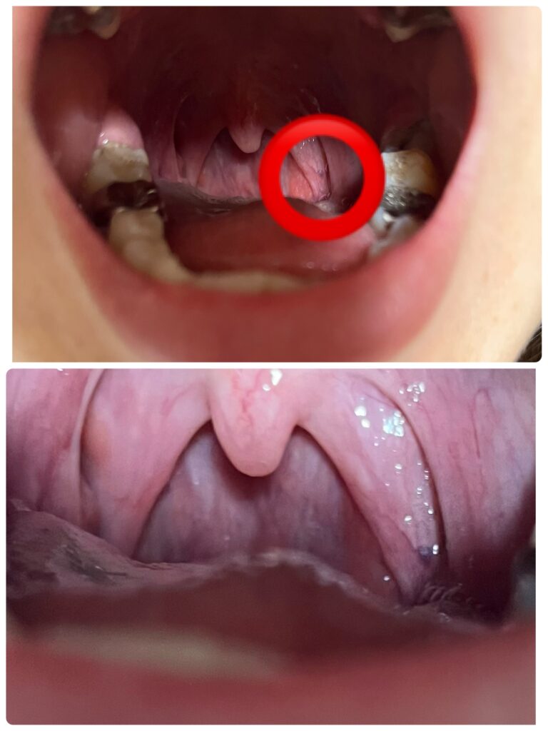 お写真拝見いたしましたが、部位的に耳鼻咽喉科の領域になります。