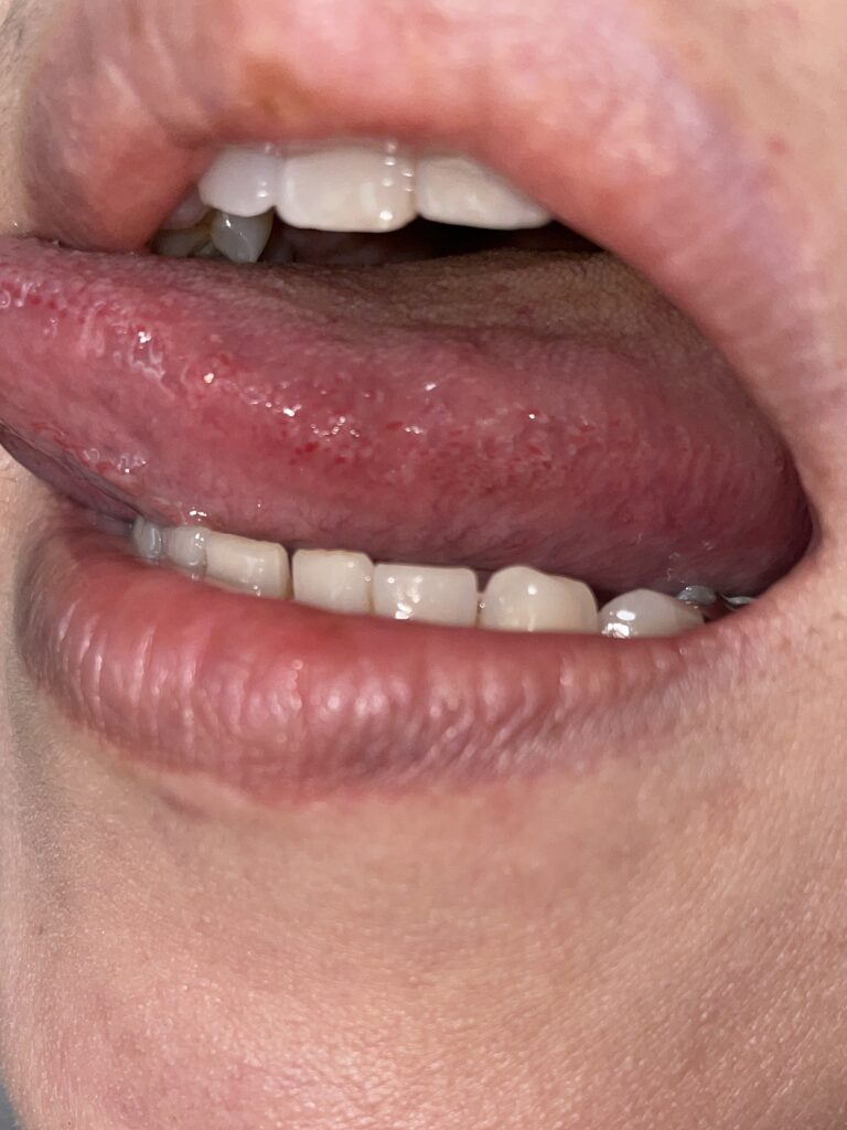 おそらく赤い斑点のように見えるものは舌乳頭です。